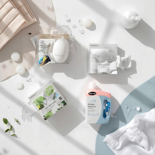 Optional laundry kits available to enhance your wash experience. Choose the option that best fits your needs: Full Wash Kit ($14,000) includes pod detergent, Downy softener, OxiClean, and a dryer sheet. Aroma Wash Kit ($12,000) includes detergent and Downy softener for a fresh scent. Basic Wash Kit ($8,000) includes detergent and softener for a simple, effective clean.